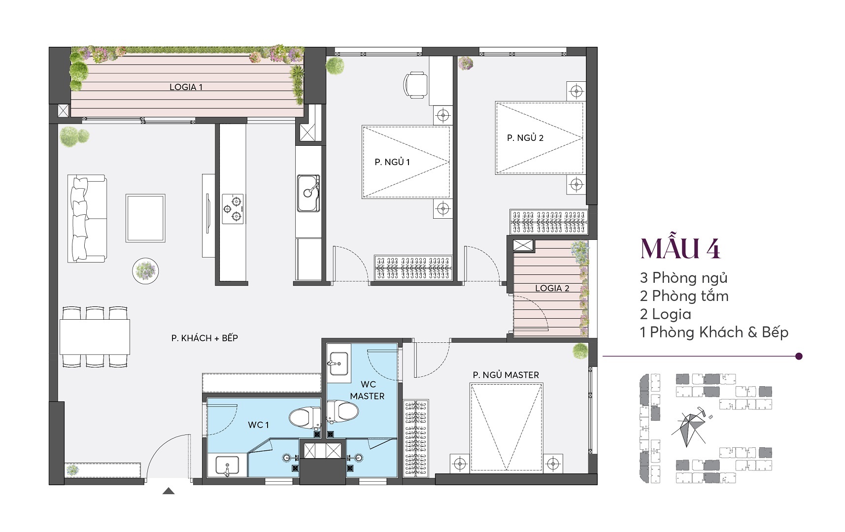 ✨ The Wisteria mang đến hệ căn hộ đa dạng diện tích từ 73m² đến 260m², linh hoạt đáp ứng mọi nhu cầu an cư – từ gia đình trẻ năng động đến những chủ nhân yêu cầu không gian sống rộng rãi, riêng tư và đẳng cấp.